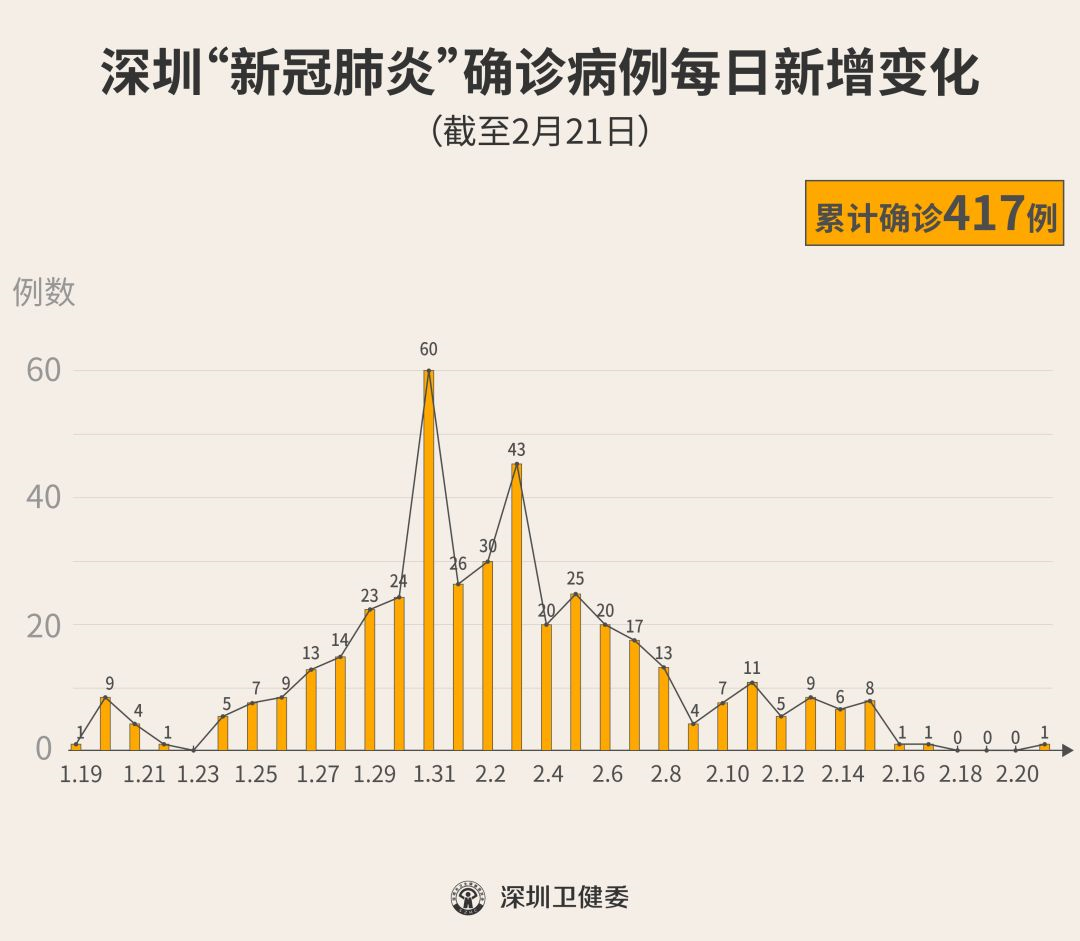 至此,深圳确诊人数417人,出院人数226人,在院人数189人。