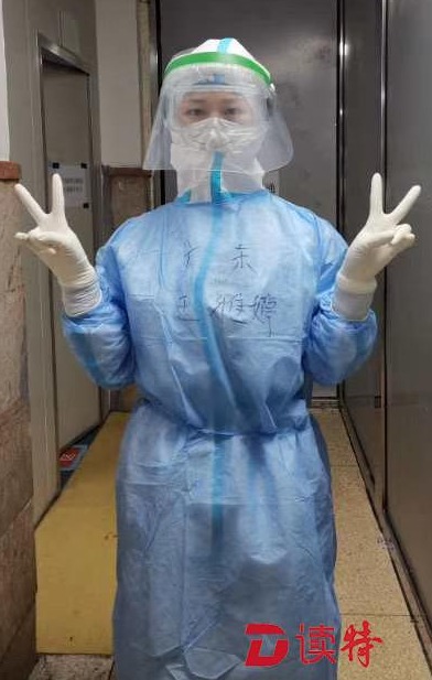 在忙碌之余,3位队员也收获了一份感动。原来,因为她们都在防护服外面写上了“广东”和自己的名字,所以一进入隔离病房后,就有患者向她们道谢:谢谢广东的支援,你们辛苦了!“那一瞬间真的感觉很暖心,很感动。”