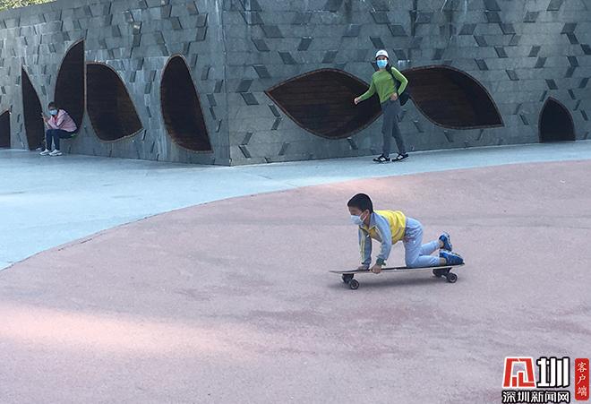 盐田中央公园是盐田区的地标之一,内有滑板山丘、游乐广场、活动草坪、主题雕塑和弧形棕榈大道等游乐场所。在公园里,记者发现,园内的广播循环播送疫情通知、防护措施等信息,呼吁游人勤洗手、戴口罩、不聚集……进入公园游玩的市民均自觉佩戴口罩,十分默契地分散开来,在空旷的地方席地而坐,并自觉保持一定的安全距离。“前段时间一直在家里宅着,连小区门都不出。今天出来透透气,顺便运动一下。”戴着口罩的刘先生,正带着孩子在阴凉下休憩,旁边摆放了两辆自行车。他说,这个时候出来呼吸下新鲜空气,活动下筋骨,十分惬意。“但是,现在还没到放松的时候,口罩肯定是要戴的,人太多、封闭的地方不建议去,还是要时刻保持警惕。”