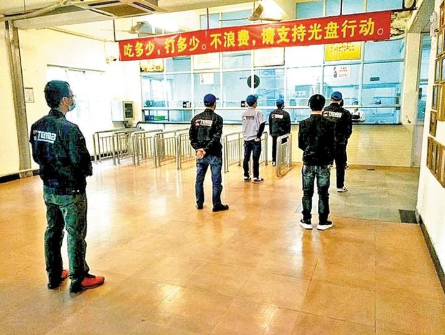 位于观澜街道的银星科技园内,企业实行分餐分食制,安排员工分批有序用餐。