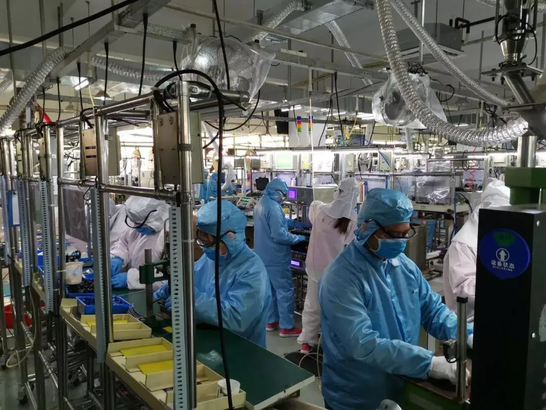位于福城街道的乔合里科技有限公司有序复工复产,规定员工不面对面设操作台,不随意脱下防护用具,工作期间不串岗、交谈。