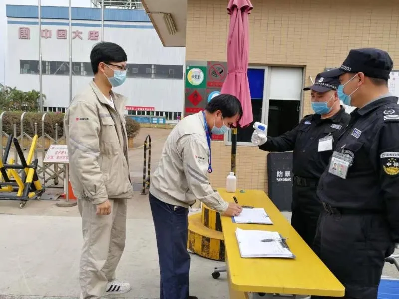 位于福城街道的大唐宝昌燃气发电公司有序复工复产,员工进出园区测温登记。