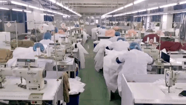 位于大浪时尚小镇的影儿集团,加紧生产隔离服,支援疫情防控工作。