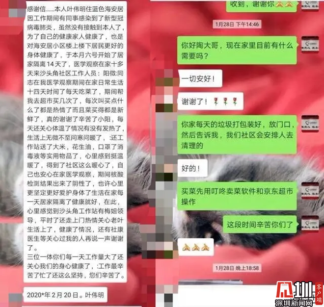 为了让女孩在隔离期间得到更好的照顾,阳薇每天都会询问她的情况,及时了解她的需求。有时为了送防护物资和生活品,阳薇一天会上门六七次。得知女孩的爸爸即将从南山返回盐田,出于降低风险的考虑,阳薇联系宾馆让其暂住,直至母女俩隔离期结束。这样的耐心与贴心,是阳薇对待居民的一贯态度。