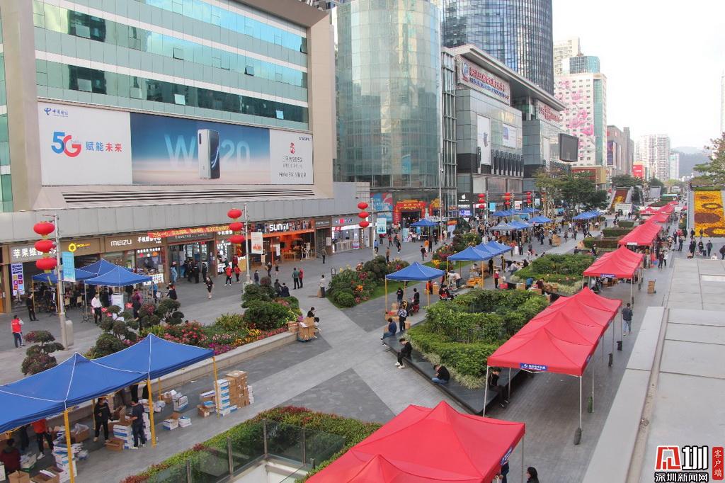 华强北电子商业街中间则上搭起了许多临时帐篷,商家正在清点货物。