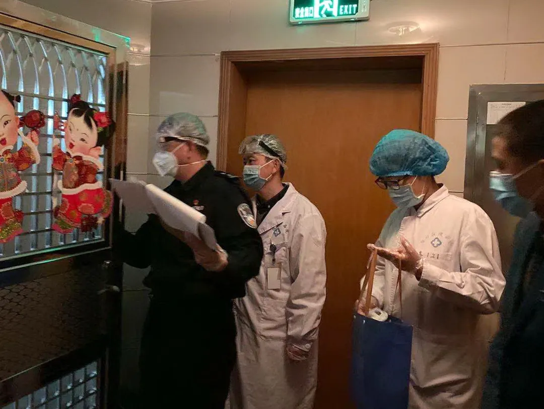 “请问您今天体温多少,有没有咳嗽……”福田派出所社区民警吴波和社康医生、网格员组成的“三位一体”小组,每天都在走访核查。1月29日,第一次上岗的吴波接连走访20多户,一直到凌晨才回警务室。