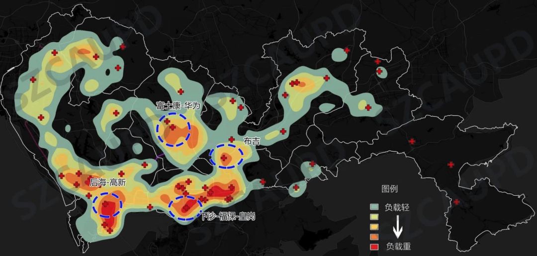 根据国家卫健委提出的“四集中”原则,发热门诊需要对(疑似)患者进行隔离、报告,并转运到有治疗条件的专业传染病医院。由于深圳目前以市第三人民医院为定点收治医院,则疑似患者均需到发热门诊就诊,那么发热门诊应尽可能的均衡覆盖,与人口密度充分匹配,且服务距离不应过大。但是将深圳人口密度与发热门诊布局进行叠加,发现各医院发热门诊覆盖小区人数和平均距离均差距较大。通过叠加疫情风险、门诊负荷与服务半径,发现部分区域的应急医疗服务最具超载风险。这些地区包括富士康-华为片区、下沙-福保-皇岗片区、后海-高新园片区、布吉片区等,也就是说,这些地区的疫情发生风险较高、人群密度与规模较大、而医疗设施相对有限,假若疫情爆发,则其对应的发热门诊将承载较大压力。深圳3月初或完成人员回流,疫情防控面临风险