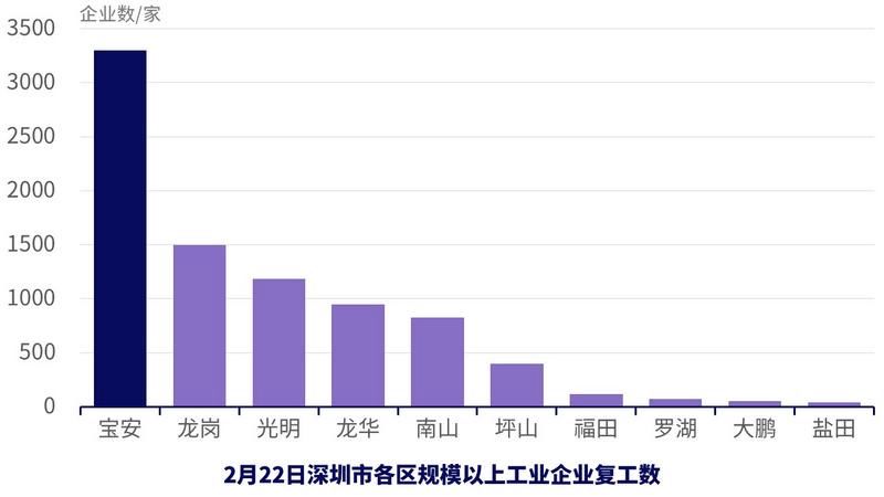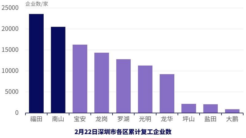 截至2月22日,全市累计复工企业已达11万余家,其中,福田区、南山区已有超过2万家企业复工,复工率在全国主要经济城市中名列前茅。