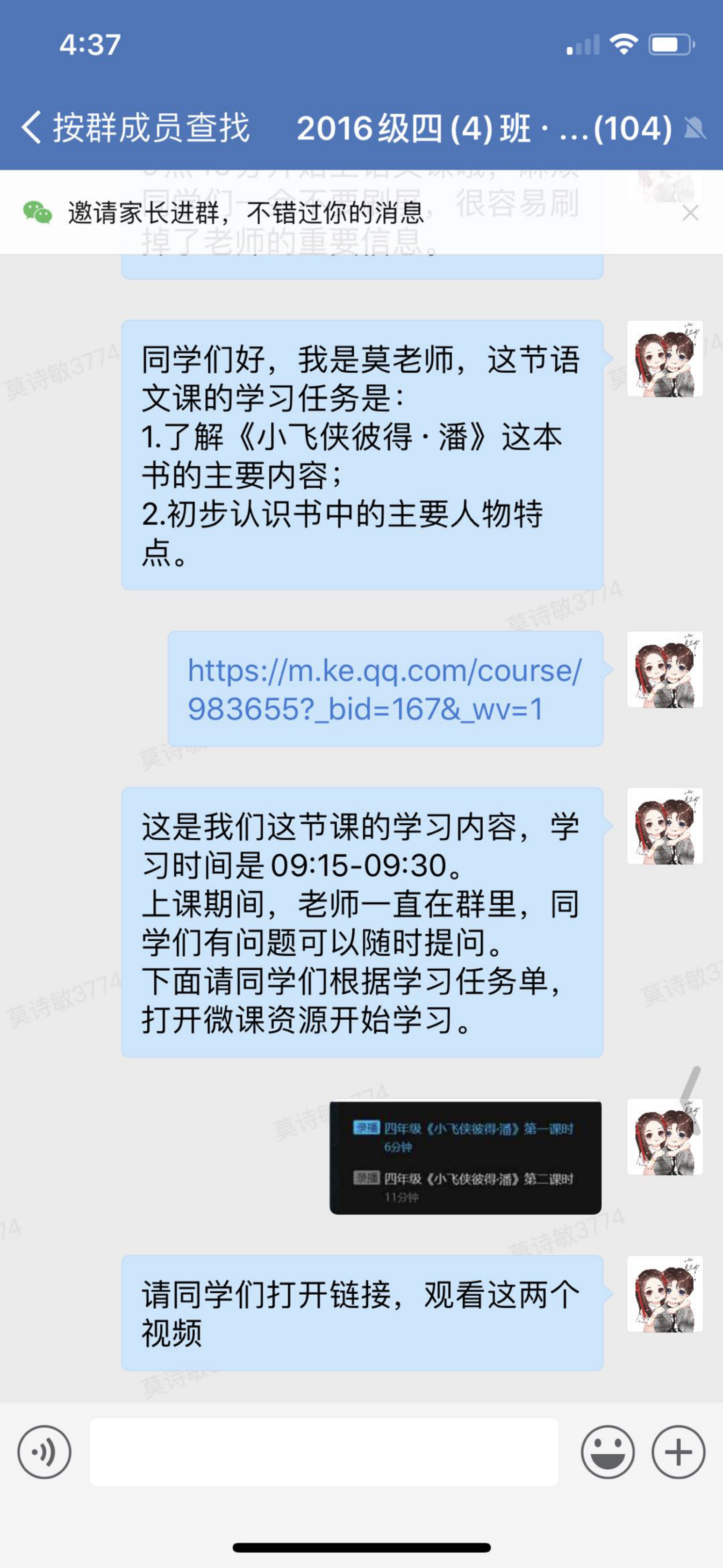 “学校考虑到老教师较多,‘龙华云校’上的腾讯课堂操作比较难把握,最终选择了在微信上开课。”上课前,莫诗敏会先列一个任务单,让学生明确学习目标,然后再将提前录制好的微课发到班级群里供学生自行观看。学生听课时,她全程在线回答学生的提问。每节课,她都会布置小作业,并预留出时间给学生完成,晚上8点半再在线上讲解。