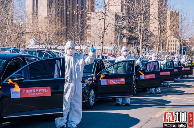 山东济南滴滴医护车队司机为医护人员提供免费接送服务。