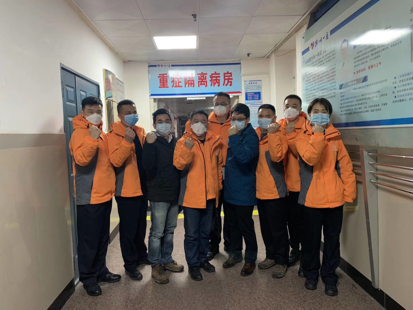 医生团队共有7个人,我也将他们送到重症隔离病区门口。我不能进去,就和大家一起合了个影,这是我这一辈子都不能忘记的一次合影,我们每个人竖拳的手势都那么有力,每个人的眼神都那么坚定!连最瘦弱的女医生单雪也看起来充满力量。
