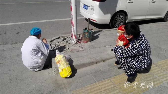 19日中午,郧西店子镇卫生院女护士江世娥乘救护车从郧西店子镇转运一脑梗病人到郧西县人民医院,途经家门不能回家,在路边蹲地吃婆婆煮的饺子,丈夫和9个月大的儿子两米外相望的泪目场景。
