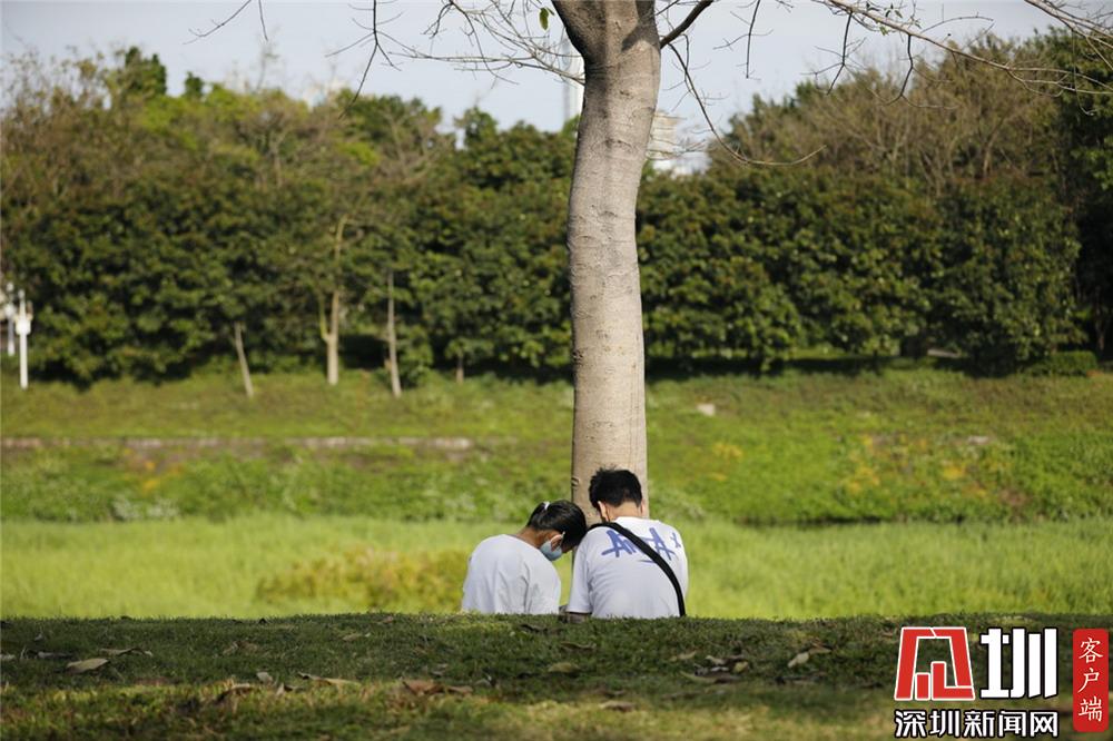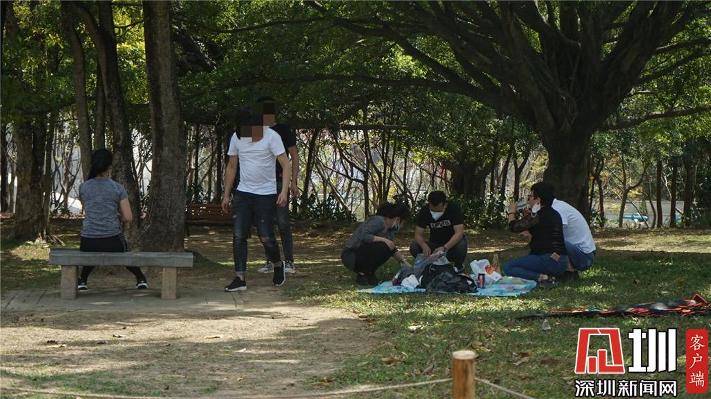 莲花山公园里,记者也发现有一些年轻人在草地上休息,其中部分未配戴好口罩。