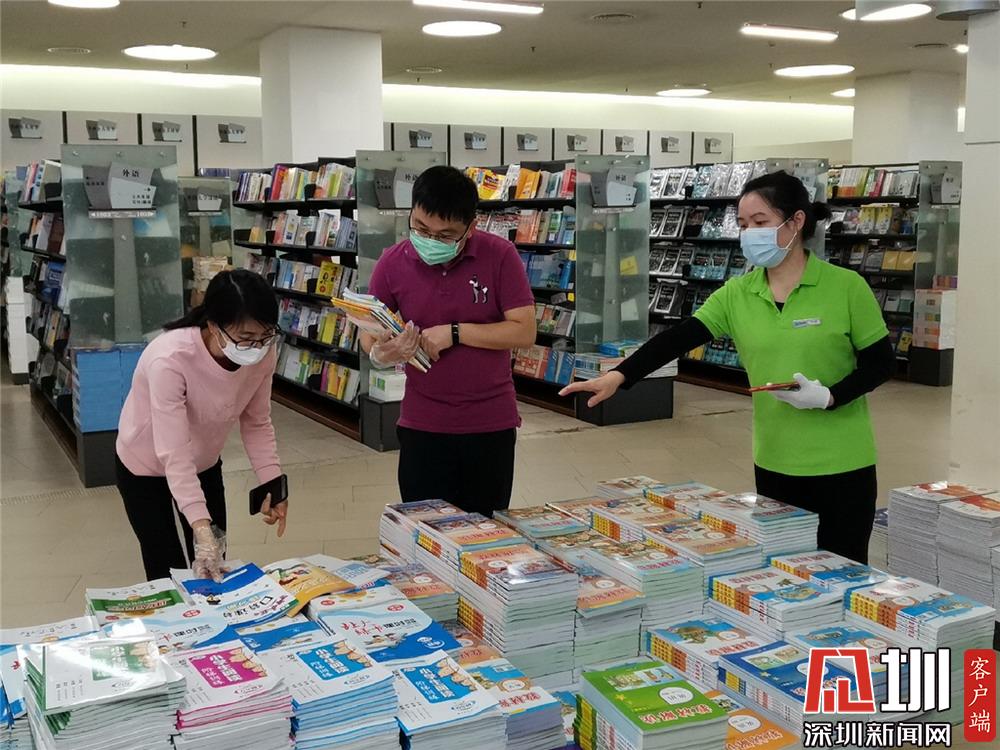 中心书城:教材区人气比较高,几名顾客正在进行挑选。