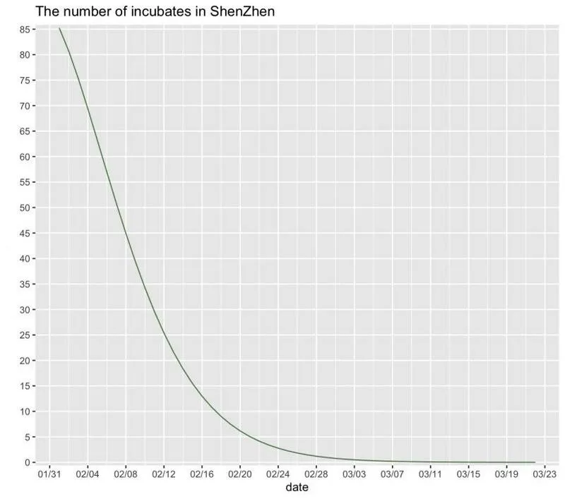 根据全国潜伏期分布,绝大部分人潜伏期小于14天,2月9日这波返深高峰带来的疫情波动早已显现。幸运的是,深圳市新增确诊人数从2月10日到2月15日没有出现反弹,而是保持稳定,每天大约新增10例。从2月16日到2月26日11天中,深圳市的新增确诊病例在其中3天中为1例,其余8天均为0例。