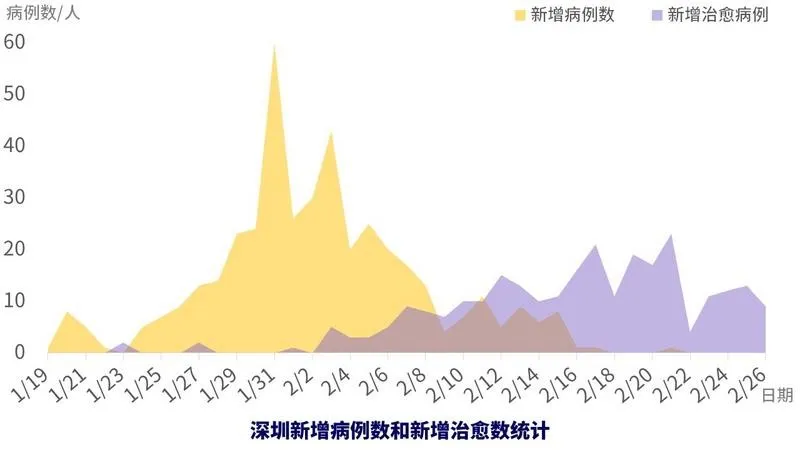 另一方面,深圳市新增治愈人数从2月9日到2月26日,除2月11日外,已经有17天大于新增确诊人数。截至2月26日,深圳累计出院271例,确诊病例在院143例,治愈率已达65%。深圳市内疫情已得到较好控制,“外防输入,内防扩散”等一系列措施取得了显著成效。