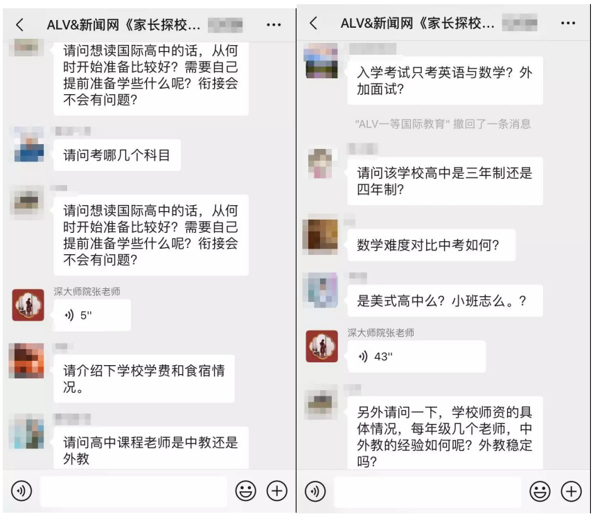 据介绍,在这三场探校活动中,招生官耐心而又细致的逐一为家长答疑解惑,赢得家长对本次活动的高度认可。以下为“家长探校团”微信群内互动截图: