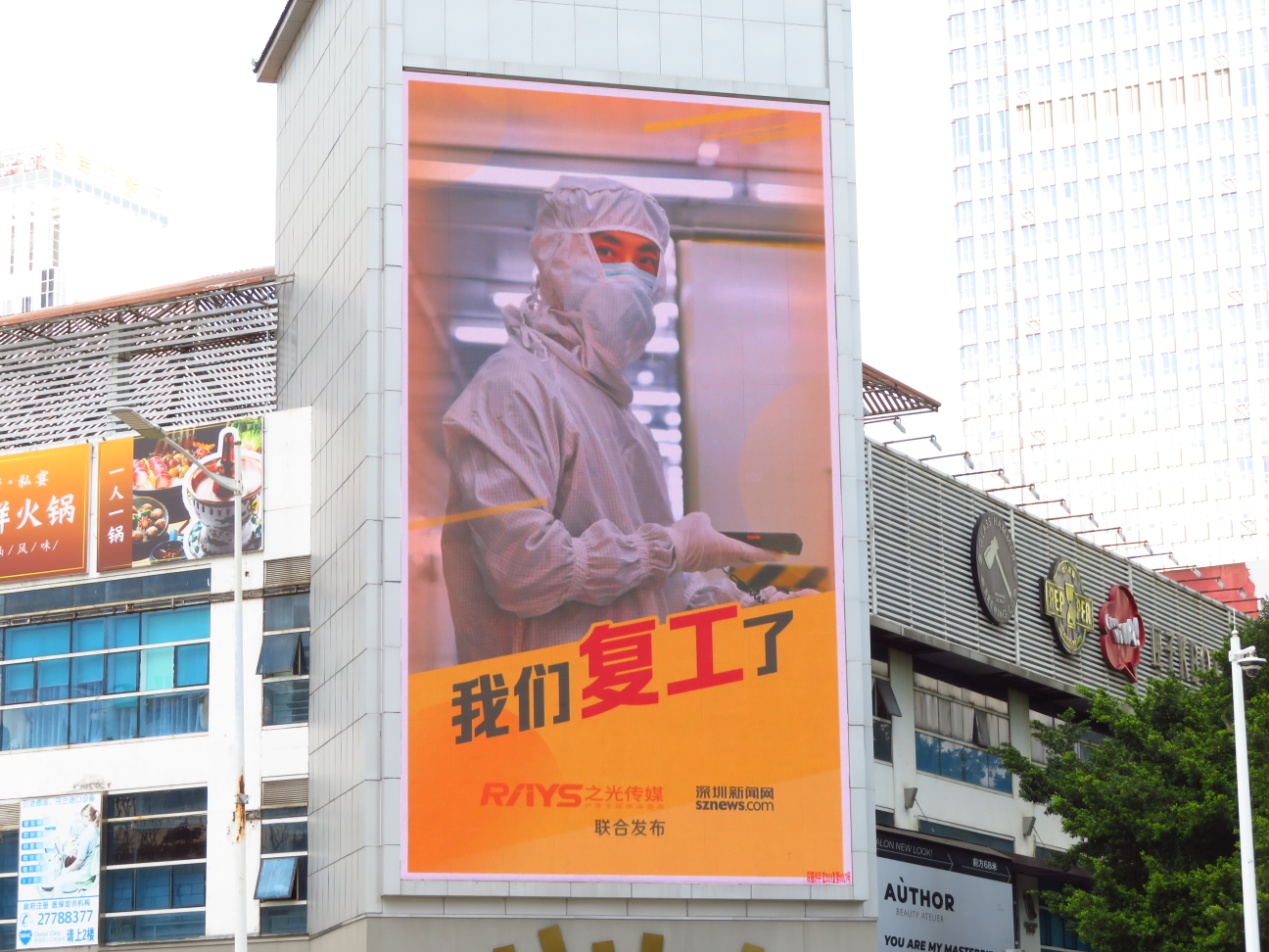 见圳客户端 ·深圳新闻网2月28日讯(记者林苗苗)“一到深圳,就看到‘我们复工了’的海报,感觉全身上下都有劲了!”近日,深圳正在全面开启复工复产模式,截至27日,深圳全市规模以上工业企业复工率已超过92%。深圳新闻网也联合之光传媒推出“我们复工了”系列公益广告,为复工的深圳人加油打气。
