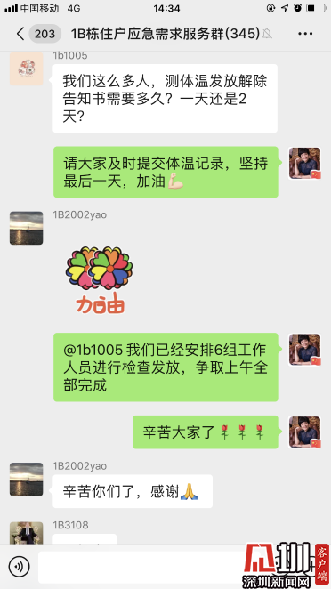 ·西丽社康医务人员协同物业管理处,建立居家隔离的沟通微信群,住户每天上报体温,如有异常,安排社康工作人员上门排查,联络工作站人员联系120转诊。
