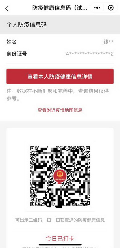 值得一提的是,依托国家政务服务平台统一身份认证系统、统一电子证照系统,利用汇聚的卫生健康、民航、铁路等方面数据。公众在实名认证后,还可以一键查看本人的防疫健康相关信息详情,如是否为新冠肺炎确诊或疑似患者、是否为同行密切接触人员。