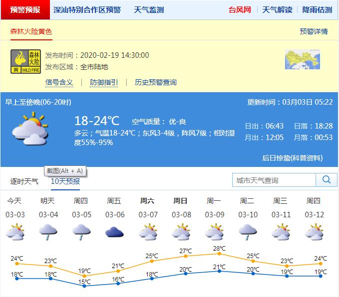 见圳客户端·深圳新闻网2020年3月3日讯 据市气象台预测,3月3日深圳多云;气温17-20℃;偏东风3级,阵风5-6级;能见度5-15公里。早晨体感偏凉,注意添衣。