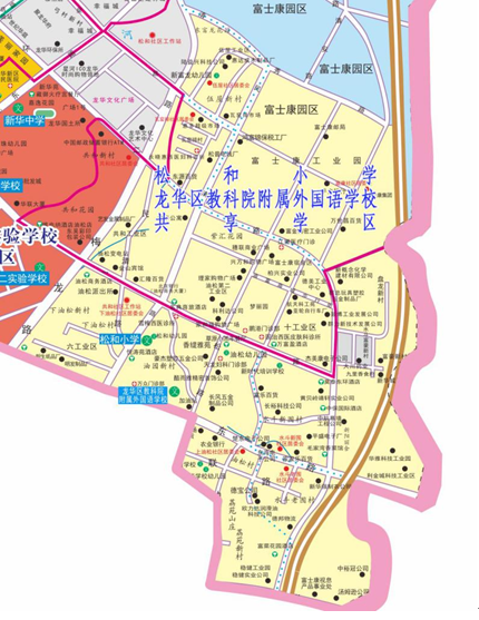龙华区教育科学研究院附属外国语学校小学部与松和小学、初中部与新华中学共享学区范围,两校在共享学区范围内统筹招生。