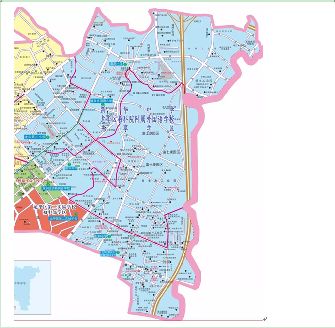 2.初中部与观澜第二中学(丹湖居委会、新城居委会、四和居委会)及龙华区教科院附属学校初中部共享学区范围;丹湖居委会、新城居委会、四和居委会的适龄儿童和少年可选择申请龙华区第三外国语学校初中部、观澜第二中学其中一所学校学位;福安居委会、悦兴围居委会、珑门的适龄儿童和少年可选择申请龙华区第三外国语学校初中部、龙华区教科院附属学校初中部其中一所学校学位。