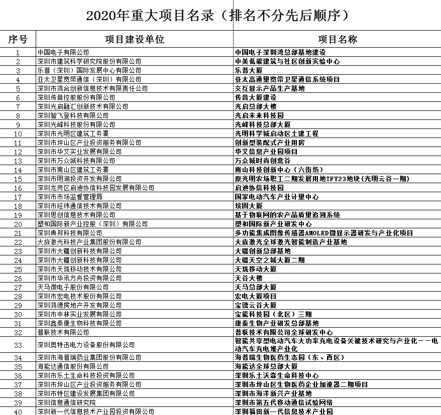 深圳市2020年重大项目计划发布:487个重点项目曝光