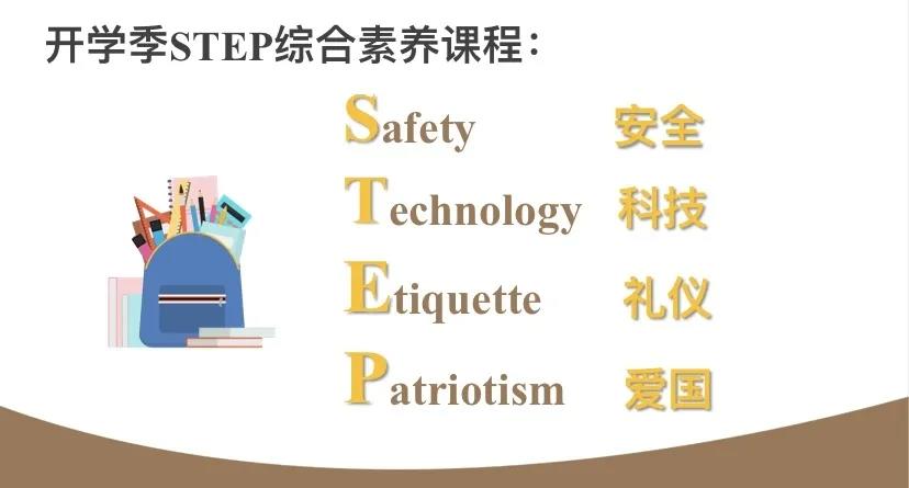 开学第一周不上常规课,上的是“STEP综合素养课”,学生成长中心的肖璇、王芷涵老师分享大受学生欢迎的“STEP综合素养课程”。STEP,是4个英文关键词的缩写,即Safety(安全)、Technology(科技)、Etiquette(礼仪)、Patriotism(爱国)。通过18个单元模块的开学季活动课程,贯通九年,融通各学科边界,立德树人,立健康之本,育中华之情,铸创新之魂,在系列课程中,传承文化自信。