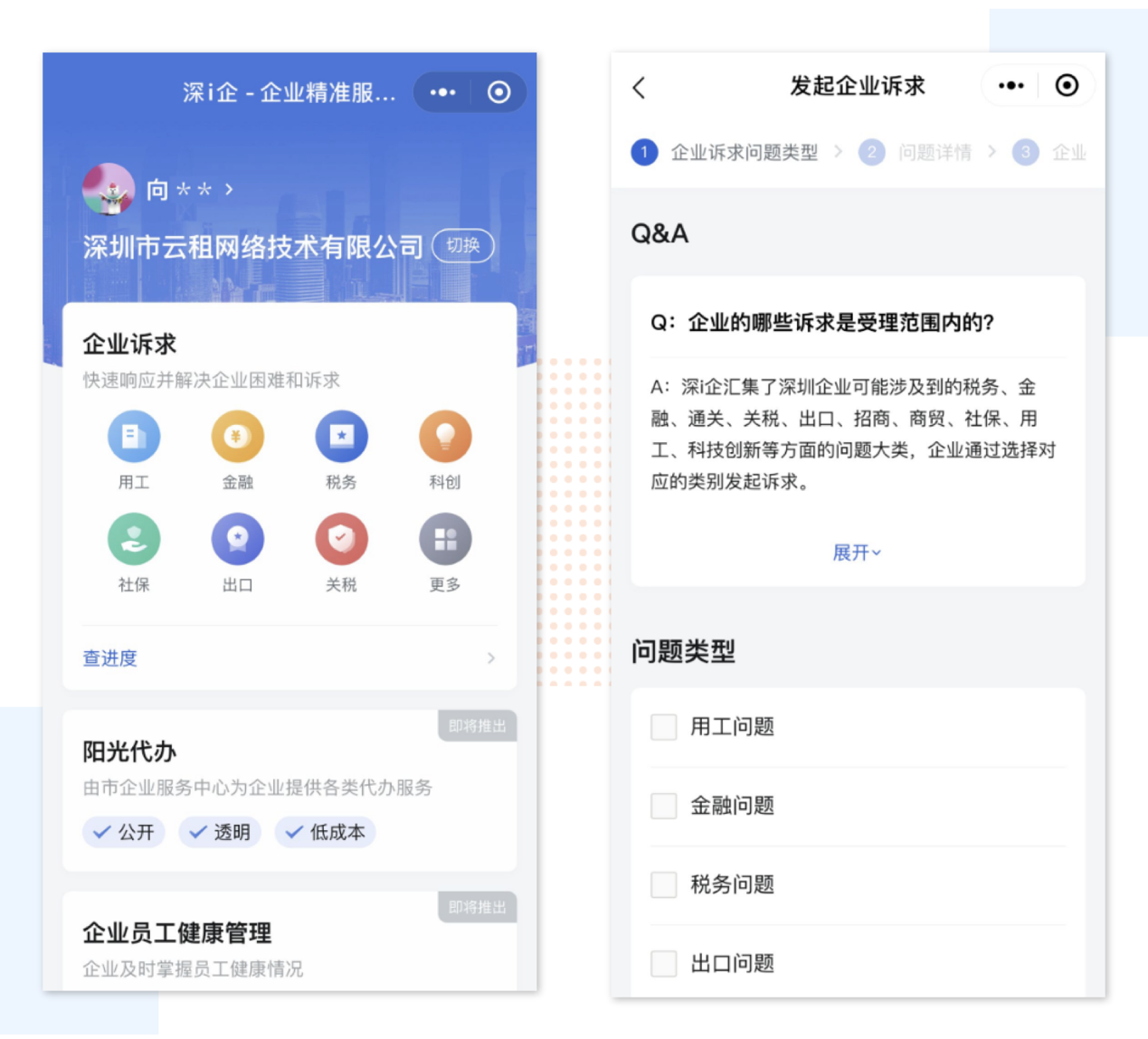 未来,“深i企-精准服务企业”平台还将继续拓宽服务范围,深化服务内容,将陆续推出,如由市企业服务中心为企业提供的各类代办服务、企业员工健康管理等实用功能,着力解决企业在疫情防控、复工复产等方面遇到的问题和困难,为企业提供更多优质服务。