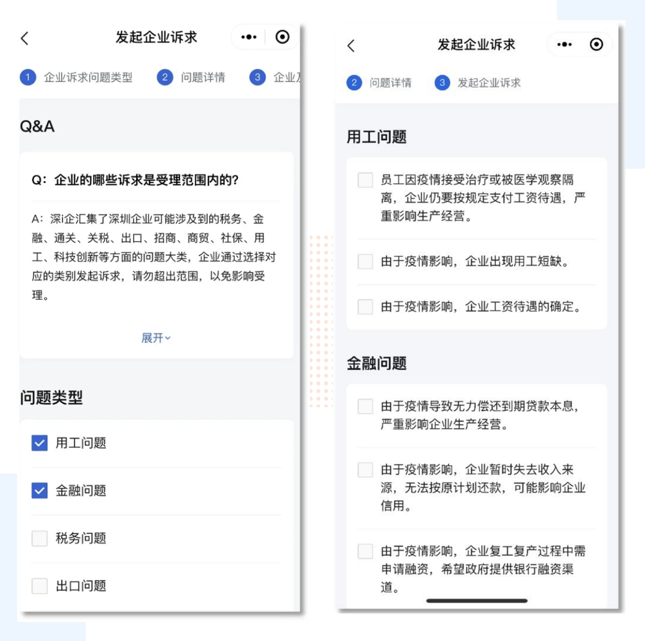 “希望企业能够有个更好、更方便的渠道提交诉求,政府部门能够更快、更高效的回复企业,实现企业有诉、我必有应。”深圳市中小企业服务局副局长吕哲表示,平台的建立是为了给深圳的企业提供更精准、更便捷的服务。下一步,还将依托平台对各企业提交的诉求进行数据分析汇总,对于企业共性问题尽快通过出台政策的方式解决,对于个性问题努力按照“一企一策”的方式解决,加快帮助企业度过难关。