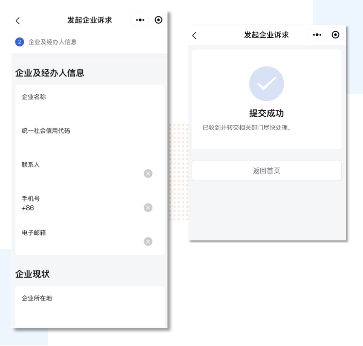 法定代表人或经法定代表人授权认可的人员均可提交企业诉求。经办人须完成刷脸实名认证,并输入正确的企业社会信用代码才可进行企业诉求填报。