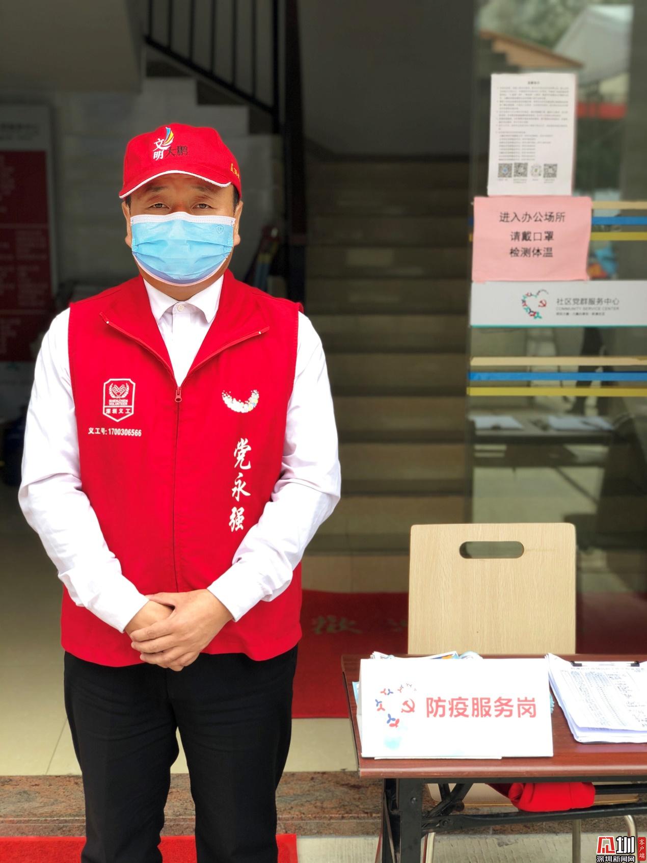 疫情来袭,岭澳社区的工作人员不分昼夜的设卡值守,党永强看在眼里,疼在心中。他响应号召,主动报名参加体温检测点排查工作,只希望能为社区工作减轻些压力,让他们能多睡一会儿。白天,党永强是大鹏一家酒店的保安领班兼党支部书记,忙碌了一天的他还没来得及休息,匆匆换上标志性的迷彩服、套上红马甲,前往社区卡口参与值守。