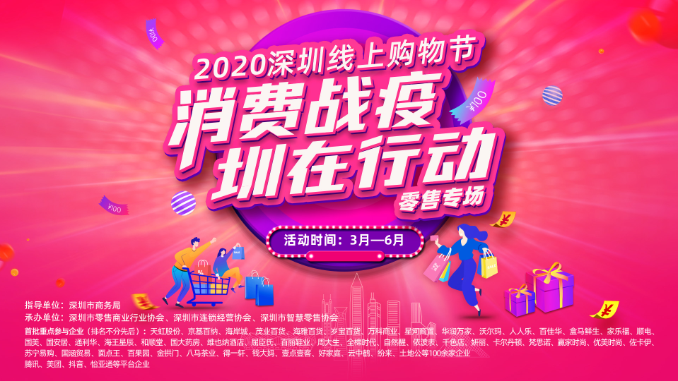 经过前期筹备,目前已有腾讯、京东、天猫、淘宝、有赞、饿了么、美团、苏宁易购等大型电商平台制定了本次活动的专项方案,各大平台将通过开设深圳购物专区、免费配套平台流量、全部减免活动费用、开通入驻绿色通道、开展直播指导培训等方式,为我市线下零售企业赋能,在非常时期切实拓宽企业消费渠道,助力实体零售企业,扩大实体消费。目前,首批已覆盖黄金珠宝、服装服饰、消费电子、家装家具、餐饮零售、海鲜美食等多个领域,有20多家协会和300多家企业踊跃响应参与,相关活动将在3月至6月期间在各大电商平台陆续推出大力度的优惠让利活动。