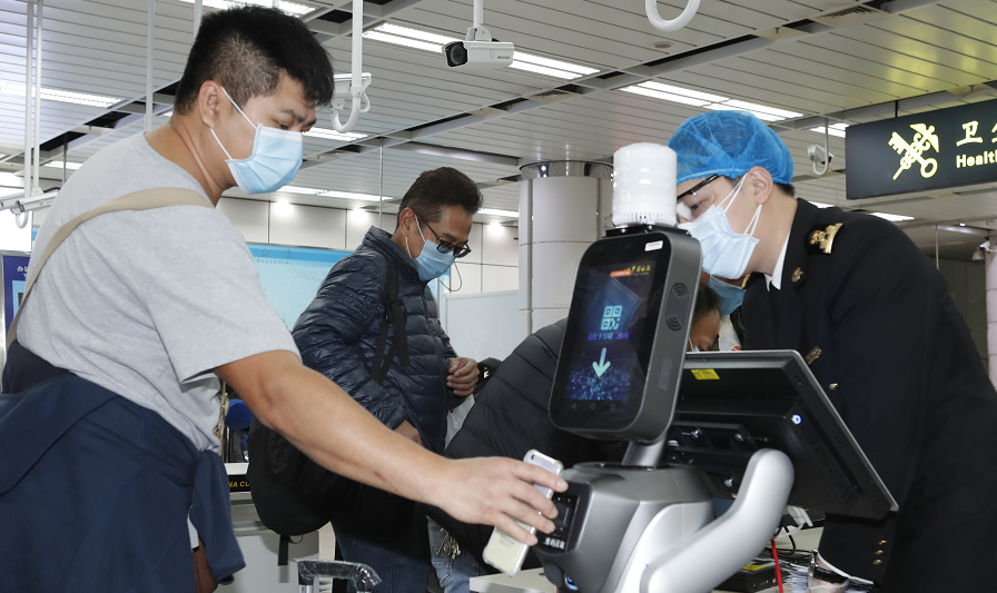 而随着返深车辆和人员的增加,深圳从2月8日开始启用线上车辆申报登记。紧接着,在G94高速深圳观澜收费处,悬挂有申报二维码的无人机,成为防疫一线工作人员的得力助手。据了解,目前深圳市已对所有进出车辆实施扫码线上申报。而在深圳鹤洲检查站,由深圳市公安局宝安分局联合优必选科技等合作单位共同打造的“黄田田”,每逢返深车辆经过总会在路边提醒入深人员扫码登记。这是全国首款用在基层派出所满足实战需求的5G机器人。