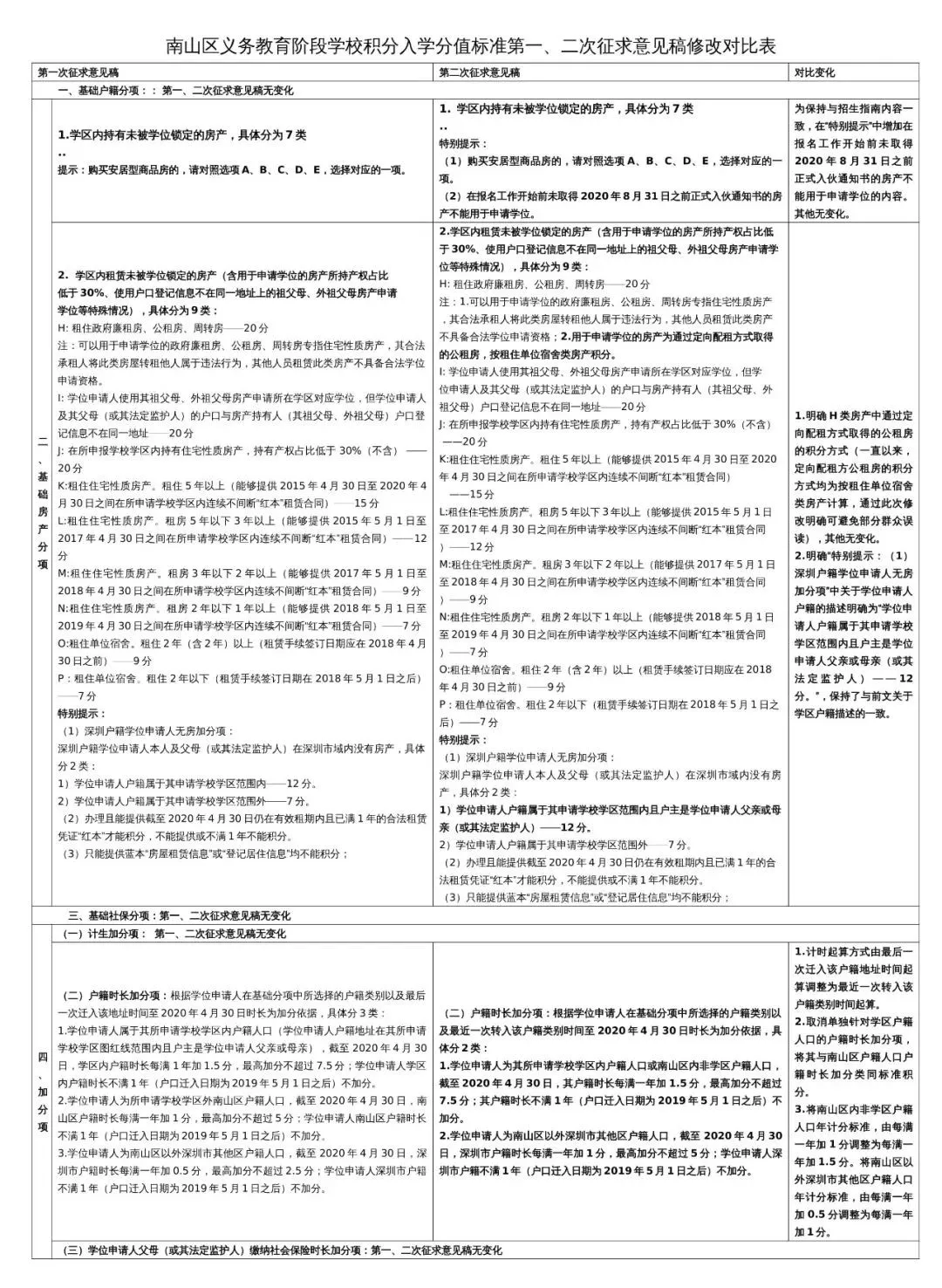 从积分的调整来看,变化最大的就是加分项,增加了“户籍加分”和“社保时长加分”,只要是深户,无论是学区内、南山区、还是南山区外都可以加分;可见优势偏向于深圳户籍。