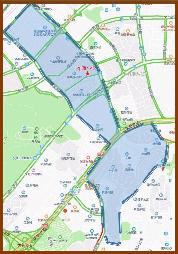 2.南湾学校龙岗大道以南部分。该招生范围与南湾学校共享。