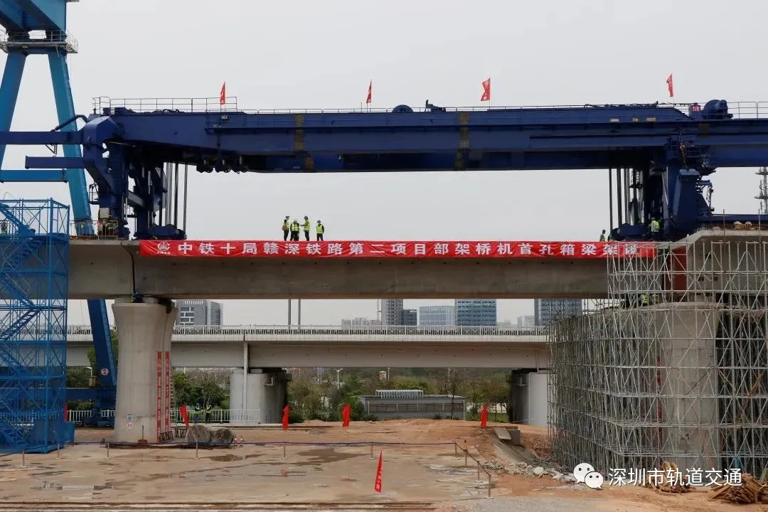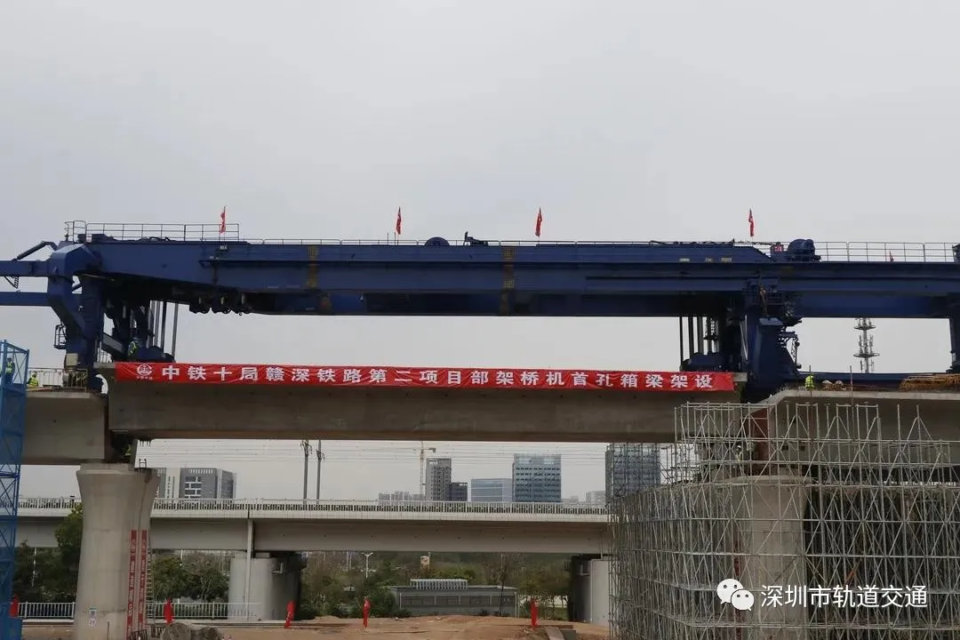 赣深铁路10标使用架桥机架设首榀箱梁圆满完成