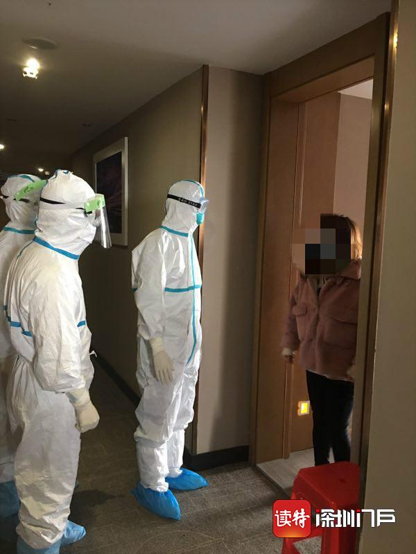 医疗队员在留置观察点对留观人员进行回访。 深圳医疗队供图