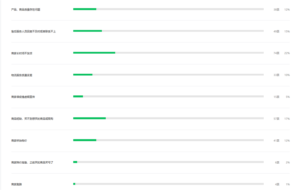 疫期期间“商家长时间不发货”最令市民苦恼