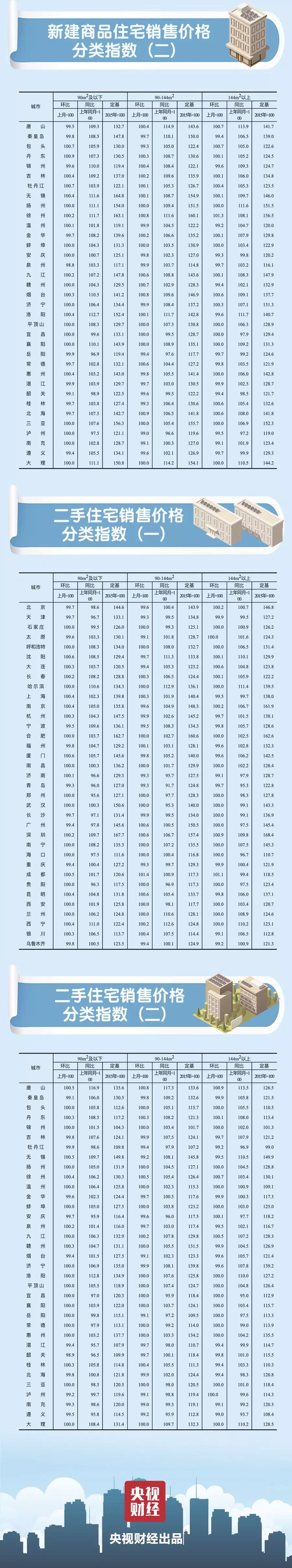 一二三线城市新建商品住宅销售价格环比持平或涨幅回落、二手住宅销售价格涨跌互现