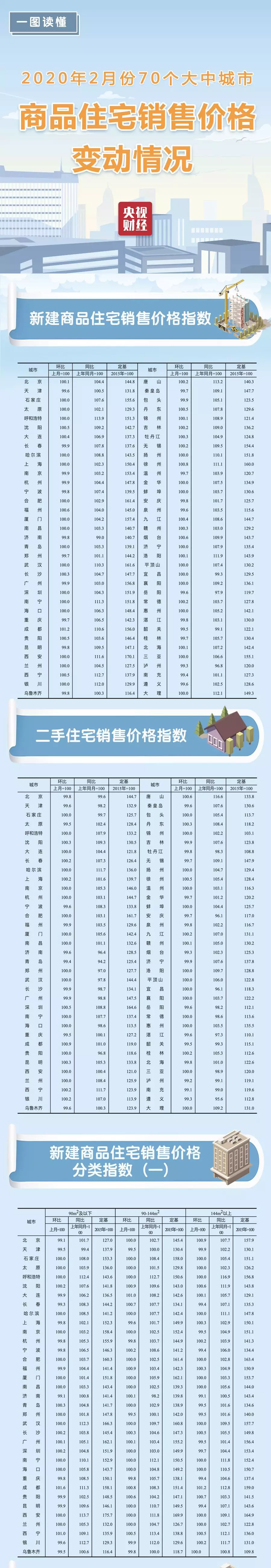 国家统计局城市司首席统计师孔鹏解读2月份商品住宅销售价格变动情况统计数据时指出,突如其来的新冠肺炎疫情对房地产市场造成明显冲击,各地区各部门坚决贯彻落实党中央关于统筹做好疫情防控和经济社会发展决策部署,及时出台了一系列政策措施,保障房地产市场持续平稳健康发展,2月份,70个大中城市房地产市场价格涨幅稳中有落。