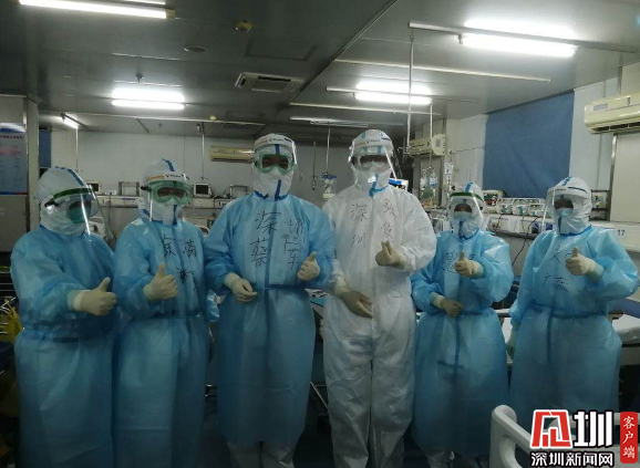 深圳边检总站赴鄂医疗队队员在ICU内合影
