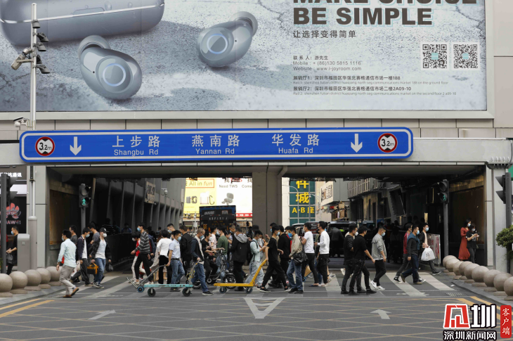 3月16日下午,华强北商圈的一条斑马线上,人流量明显增加。