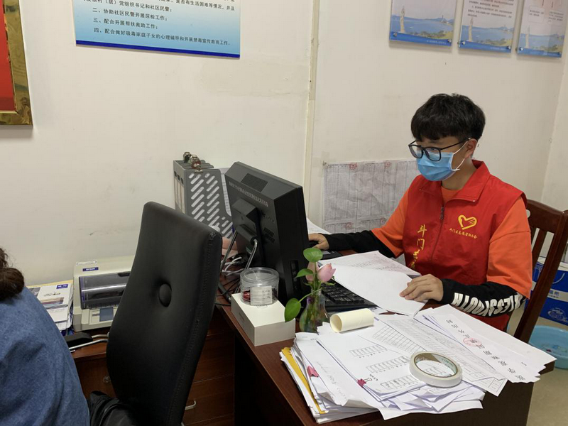 深圳信息学院19级刘泓涛在社区参加志愿服务。
