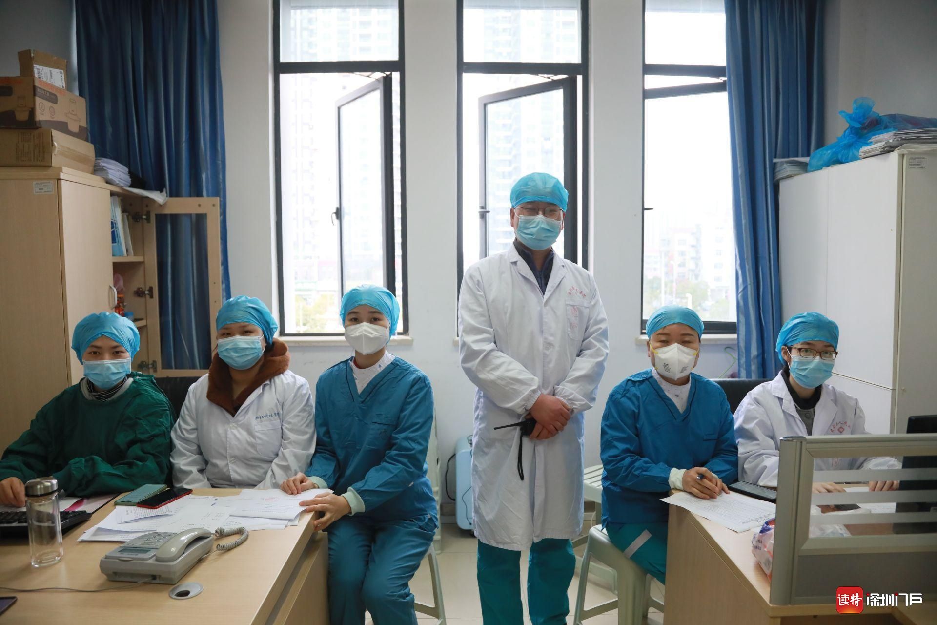 2月24日,监利县人民医院感染科副主任黄建平(中)和同事在办公室里的合影。疫情爆发后,黄建平写下遗书投入战疫,随后在实现确诊患者和疑似患者双清零之前,连续50多天没有休息,没有回过家。