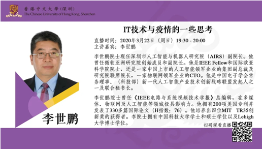 李世鹏院士现任深圳市人工智能与机器人研究院(AIRS)副院长。他曾任微软亚洲研究院创始成员和副院长。他是IEEEFellow和国际欧亚科学院院士,还是一家中国上市的人工智能领军企业的集团副总裁及研究院联席院长,一家物联网领军企业的CTO。他是中国电子学会常务理事、(科技部)新一代人工智能产业技术创新战略联盟发起人之一及联合秘书长。