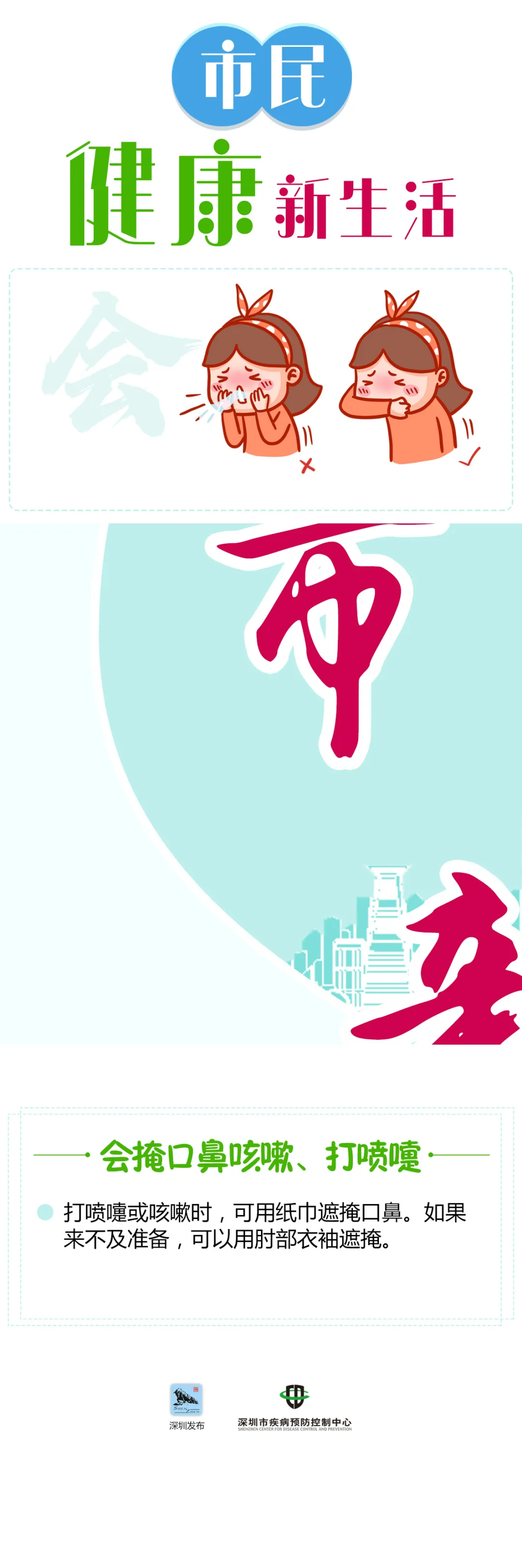 打喷嚏或咳嗽时,可用纸巾遮掩口鼻。如果来不及准备,可以用肘部衣袖遮掩。