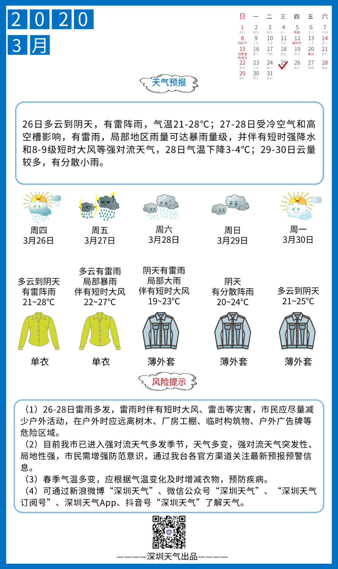 特别提醒仍奋战在疫情防控岗位上的工作人员,春季气温多变,强对流天气多发,请随时关注天气预报,做好防御措施。