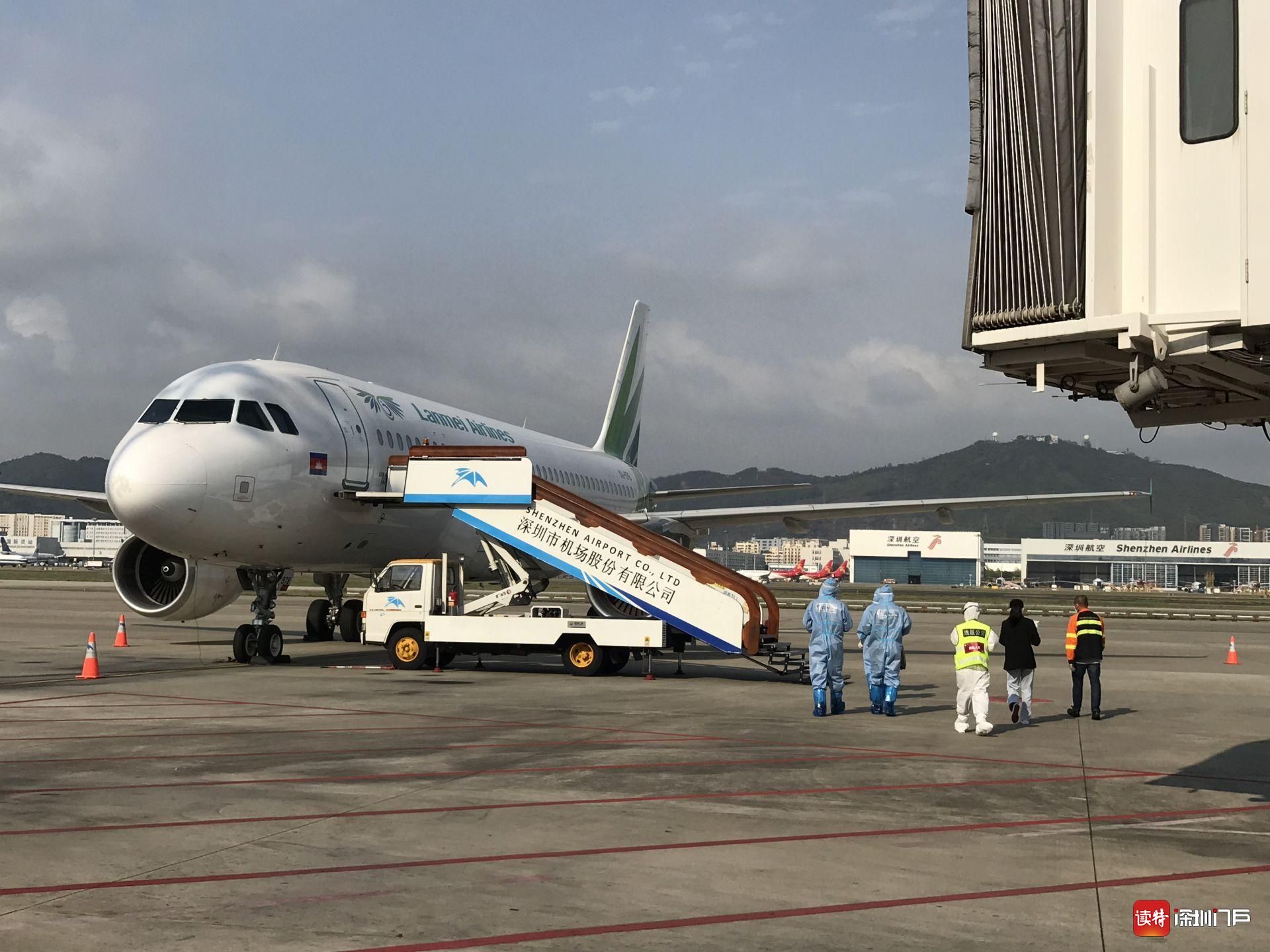 下午3时许,多名需要登机进行检疫的深圳机场海关卫生检疫关员开始准备。他们穿戴上防护服、护目镜、口罩、医用手套等防护设备,并携带手持测温仪、查验表、旅客信息表等检疫设备和资料。一切准备就绪后,海关卫生检疫关员乘坐专车抵达停机坪。